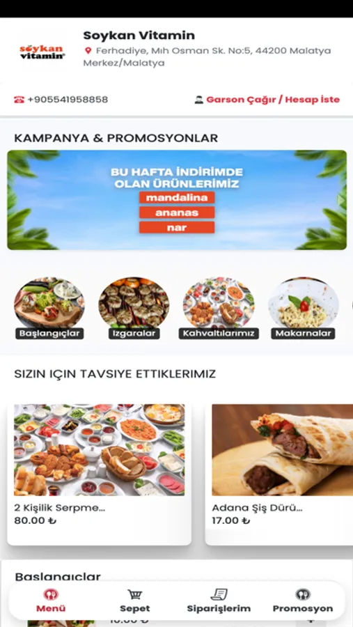 Malatya Soykan Vitamin Qr Menü ve Paket Sipariş sistemi.