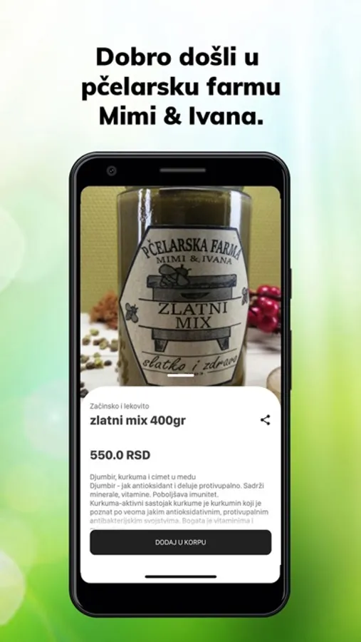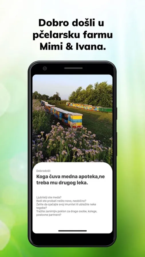 Pored meda, naše pčelice nam daju polen,propolis,pergu,matičnu mleč,vosak. I od svega toga mi pravimo razne kombinacije. Volimo zanimljivo i neobično,te se tako u našoj ponudi mogu pronaći i takvi proizvodi. Razne mešavine sa suvim voćem,sa lekovitim i začinskim biljem,krem med sa dodatkom voća…