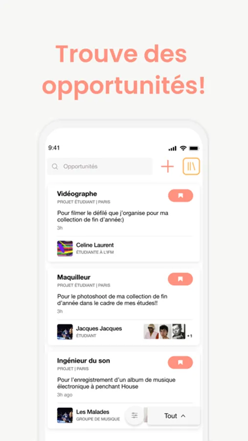 Anemone permet à un artiste, technicien ou commercial d'accéder à tous les appels à projets publiés par les étudiants des autres écoles avec lesquelles nous avons un partenariat avec le BDE, notamment l'Ecole Estienne, l'Ecole Boulle, l'Ecole Duperré, l'ENSAAMA, l'Ecole Strate Design, L'ESMOD, l'Institut Français de la Mode et Sciences Po (tous les campus en France). Ils pourront trouver des collaborateurs et partager leur portfolio et leur CV et trouver de l'inspiration pour leurs projets. Notre objectif est fondamental: démocratiser l'accès à l'information dans les industries culturelles et créatives.