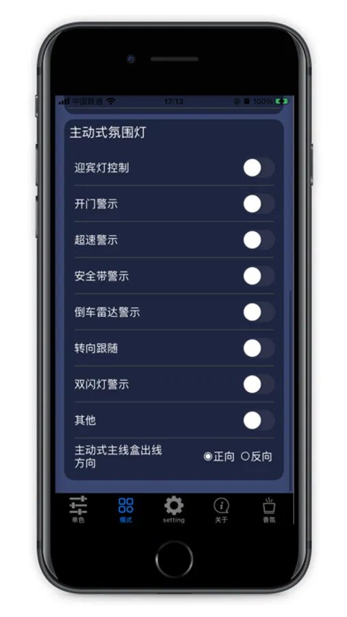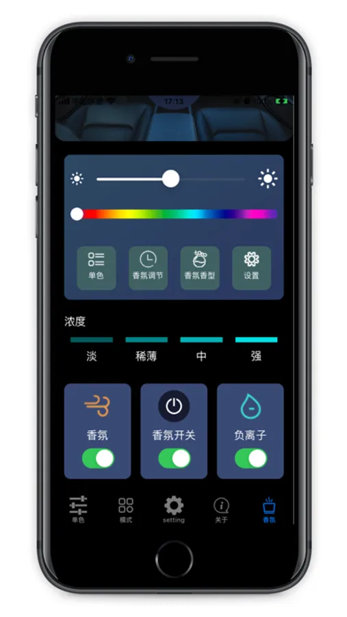 This is a Bluetooth-controlled ambient light app that can be used for scenes such as cars. After connecting the device via Bluetooth, you can select various effects of the ambient light in the app.