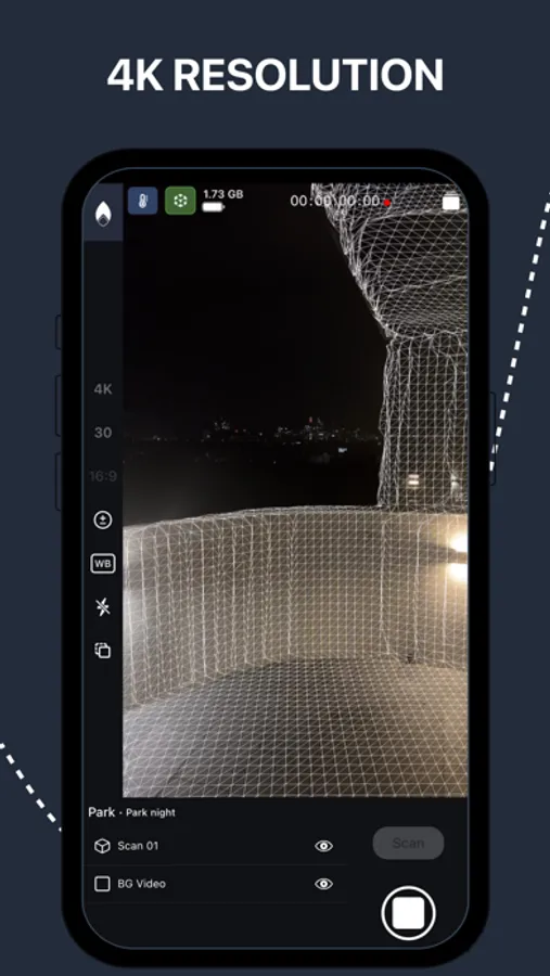 Capture 4K HDR videos and instantly get the camera tracked inside a mesh of your environment, all at a real-world scale of 1 meter per unit.
