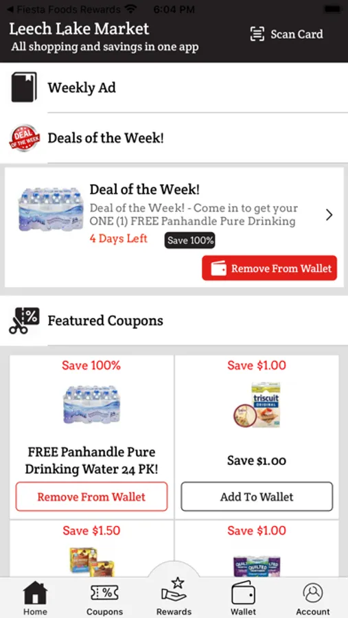 It’s simple. Just log in or register for an account, add the coupons you want to your app Wallet, and scan your Leech Lake Market Rewards app barcode in store at the registers to earn points and redeem your coupons.