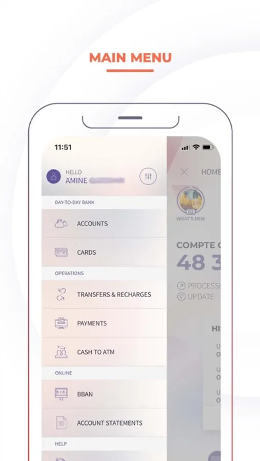 - My secured area: I simply activate my account to securely access it and benefit from all features related to my bank account management. I can view my accounts and cards, make transfer, send money to my relatives…