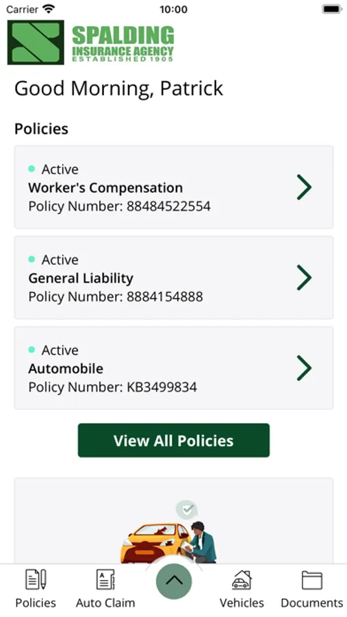 Allows easy access to client policy information. Gives you the ability to view policy documents. Enables you to print automobile identification cards and provides you a list of your agency contacts.