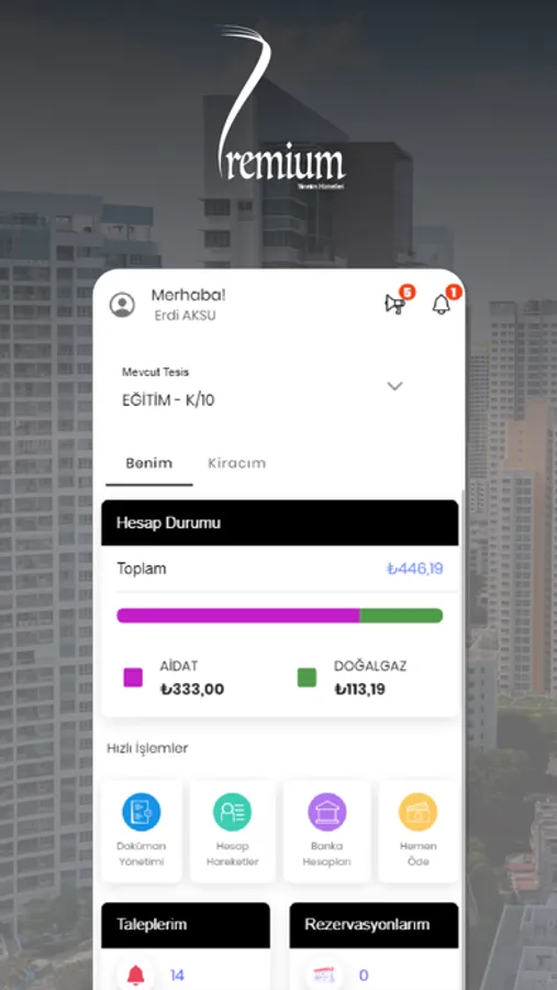 • Taleplerim; Teknik, Güvenlik, Temizlik, Bahçe Bakım vb. hizmetlerinde tespit edilen olumsuz durumların fotoğrafını çekerek iş talebi oluşturma,