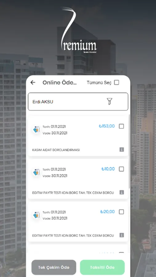 • Online Ödeme; Aidat, Isınma, Yatırım, Sıcak su vb. gibi gider kalemlerine ilişkin tutarları görüntüleme ve kendi Site Yönetimi Hesabınız ile ödemelerinizi kolayca gerçekleştirebilme,