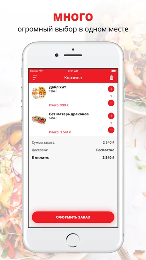 Скачивайте наше приложение, оформляйте заказ и наслаждайтесь любимой едой, где бы Вы ни были! Приятного аппетита!