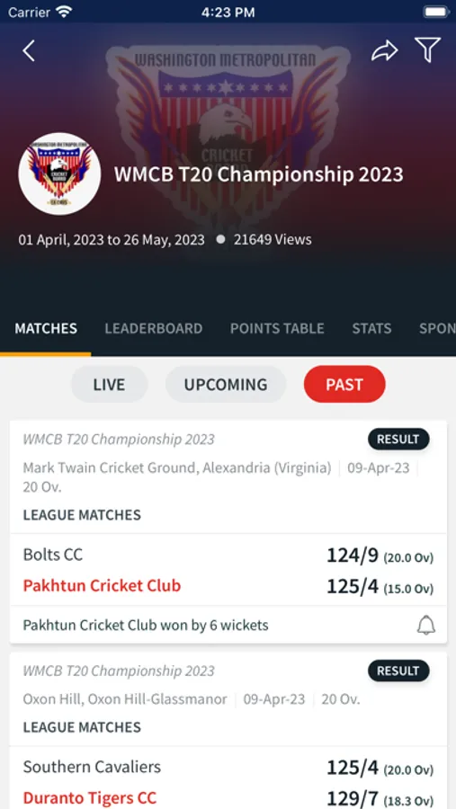 This is an official Washington Metropolitan Cricket Board App to follow Live Scores, Match Scorecards, Player Stats, Leaderboards, News and other topics of interest pertaining to WMCB.