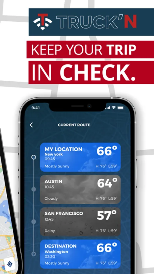 Truck'n is a powerful trucker GPS app that provides truck maps with the nearest truckstop, weight station, or place of interest. With detailed en-route truck navigation and weather updates to help you make informed decisions, Truck’N truck driver GPS ensures you're always on the right truck path so that you can arrive at your destination safely and on time. With its intuitive user interface and advanced features, Truck'N is the ultimate set of trucker tools for modern drivers. It eliminates the hassle of outdated maps and unreliable truck route GPS navigation found in other apps ill-equipped for drivers needing commercial GPS like google maps. Whether cruising up and down the coasts or heading through the heartland, Truck’N GPS for trucks keeps you informed and ready for anything on the trucker path.