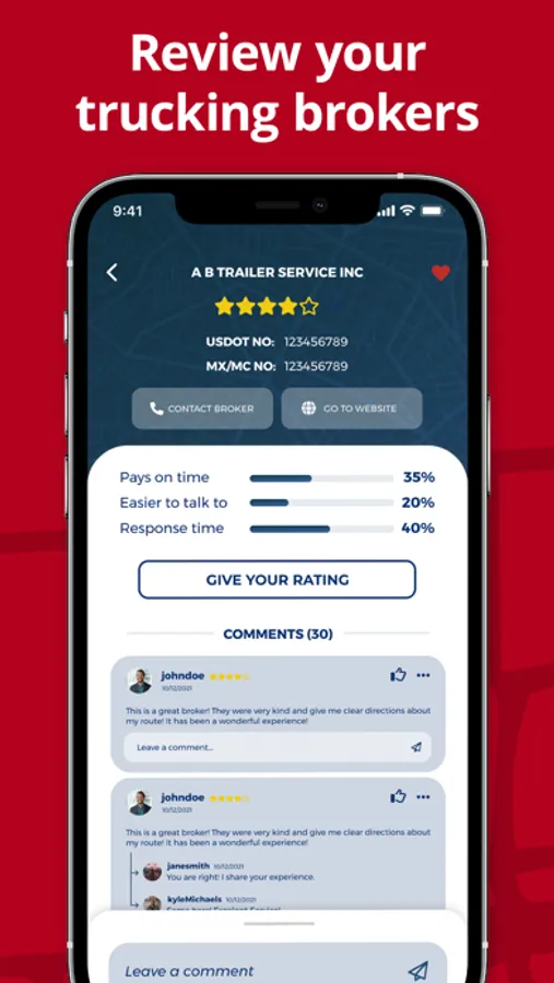 Brokers are a crucial part of the trucking industry. At Truck'N, we know that making informed decisions about who to work with is essential. That's why we've made it easy for you to review brokers and share your experiences with the trucking community. Review brokers and help other drivers make the right choices. We can hold brokers accountable and create a fair and competitive marketplace for everyone. No more feeling left in the dark when choosing the right broker. With Truck'N, you'll have the power to make informed decisions and ensure you're only doing business with the best brokers.