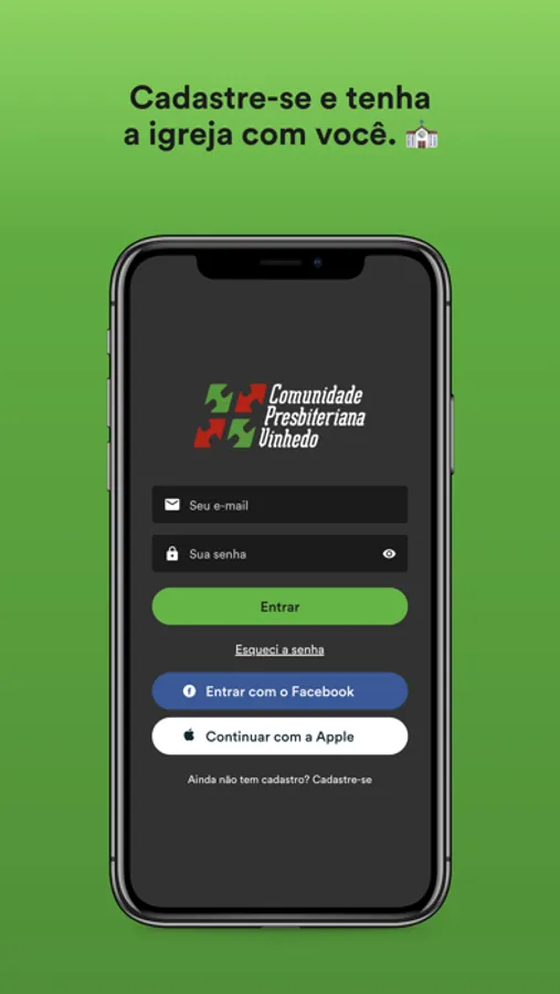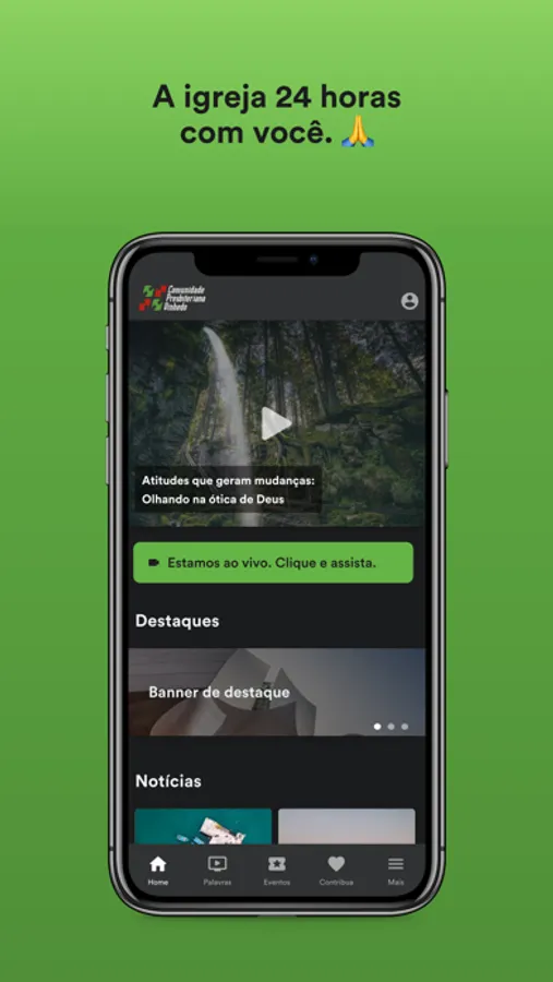 - Conecte-se com a igreja através dos grupos de interesse, receba conteúdo direcionado e obtenha sua carteirinha exclusiva.