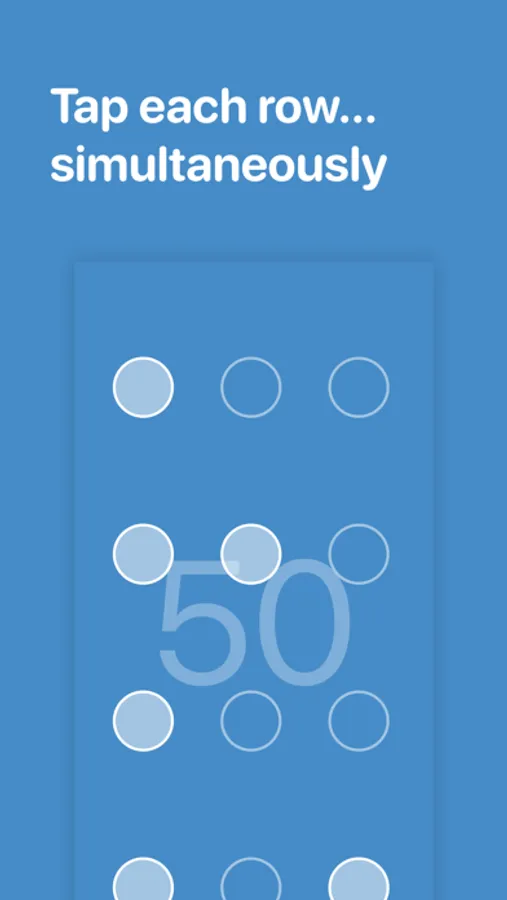 Simply tap the filled circles in each row, but there's a catch. They must be tapped simultaneously.