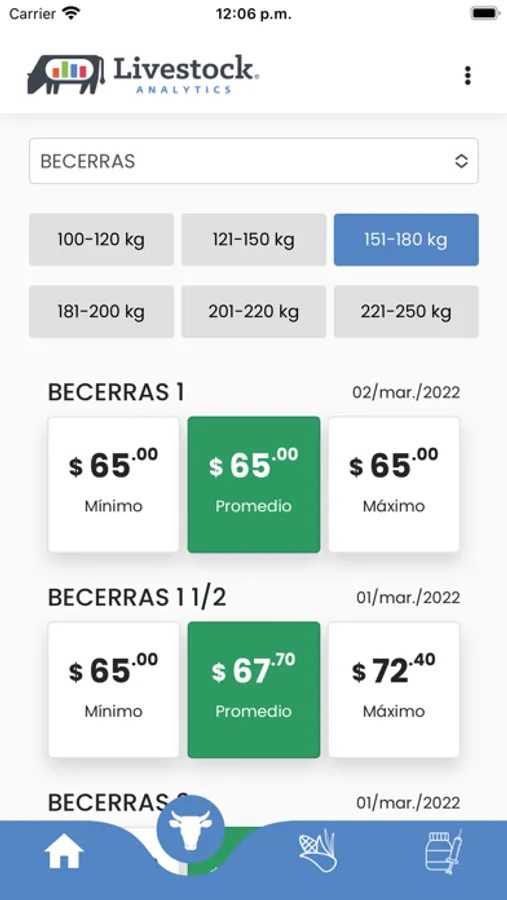 La Guía de Precios de Livestock Analytics te permite de manera fácil y rápida consultar y monitorear los precios más actualizados e históricos de ganado en pie. La consulta en la app se realiza en dos pasos: