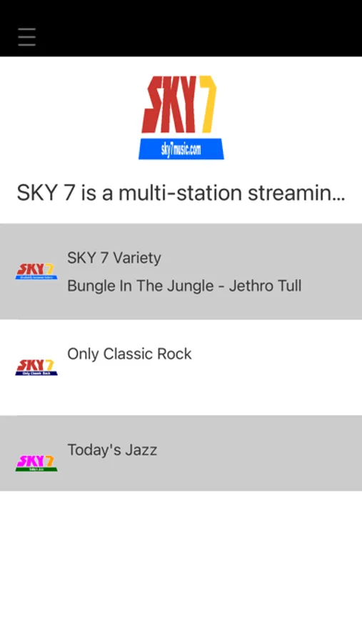 SKY 7 is a free multi-station streaming radio app with Awesome Variety! You get great music on each of our niche stations with more to come. In addition to our Awesome Variety, we have great weekend programming on many of our station channels. Rock & Roll 101 with Daniel Dullum and The Friday Night Party with Mike Lamb on Variety. Cool & Swingin' with T & Evie and The Fuse with Cliff Smith on Today's Jazz. and there's more cool shows in development.