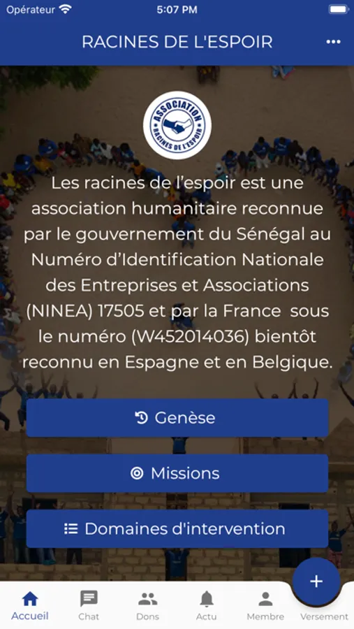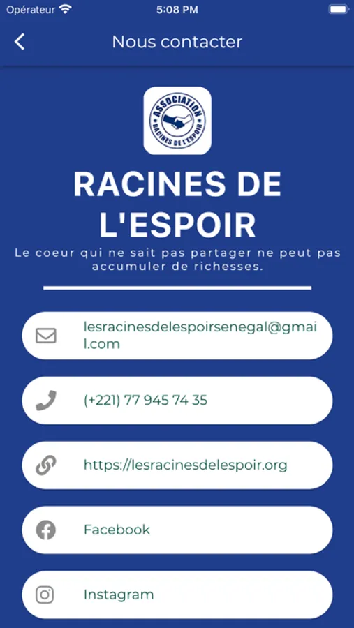Les racines de l’espoir est une association humanitaire reconnue par le gouvernement du Sénégal au Numéro d’Identification Nationale des Entreprises et Associations (NINEA) 17505 et par la France sous le numéro (W452014036) bientôt reconnu en Espagne et en Belgique. Sa mission est de faire du social, pour des personnes défavorisées en particulier chez les enfants malades, les enfants talibés et les enfants sans abris, de prôner un monde solidaire de partage et de compassion pour un lendemain meilleur, éradiquer la mendicité des enfants et aider les enfants malades avec une prise en charge totale. Elle a été créée le 15 septembre 2013 par des jeunes sénégalais dont la moyenne d’âge tournait autour de 23 ans. Bientôt 6 ans maintenant que Racines de l’Espoir s’est élargit avec plus de 1000 membres et est représentée dans différents pays dont la France, le Canada, le Maroc, l’Éthiopie, les États-Unis, etc. L’association intervient au Sénégal, en Côte d’Ivoire et au Burkina Faso. Cependant le grand siège reste au Sénégal à la villa R162 Hann Maristes 2, précisément chez la présidente fondatrice Safiètou Guèye. Toujours dans sa dynamique de venir en aide à la couche vulnérable, l’association les Racines de l’Espoir s’est récemment implanté à Thiès et dans les autres régions pour soutenir les personnes vulnérables qui y vivent et à fait de nombreuses activités.