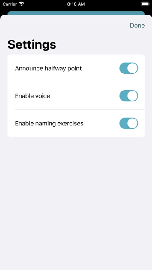 5. Voice prompts count down last 3 seconds of each interval, announce the halfway point on activity internals, and what’s up next (if the next exercise has been named)