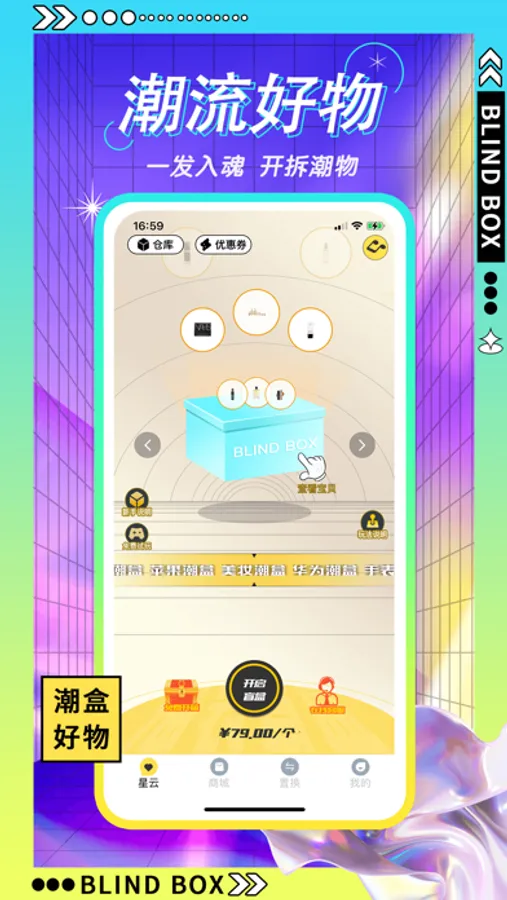 星选盲盒是一款别样的创意线上购物平台,让用户感受游戏化的沉浸式购物体验,开启全新的潮流电商时代。平台网罗市面上新潮好玩的优质高性价比商品,可在线购买,潮流商品等你来抢!