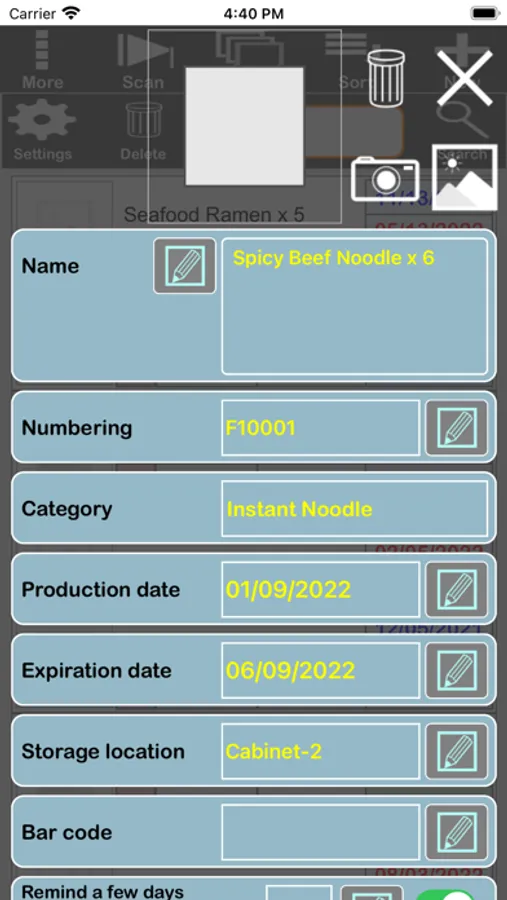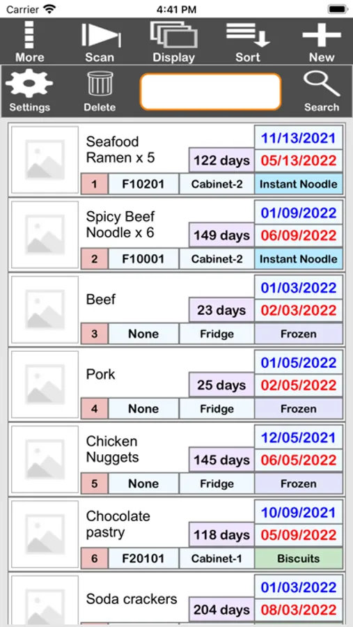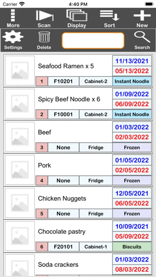 - Once scanned correctly, items with the same name but different dates can be listed at one time.