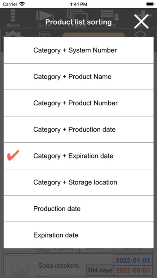 - Main list sorting: You can sort the list by category and product name, serial number, manufacturing date, expiration date, and storage location according to your needs.