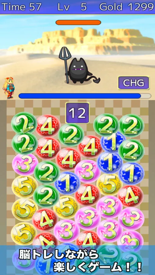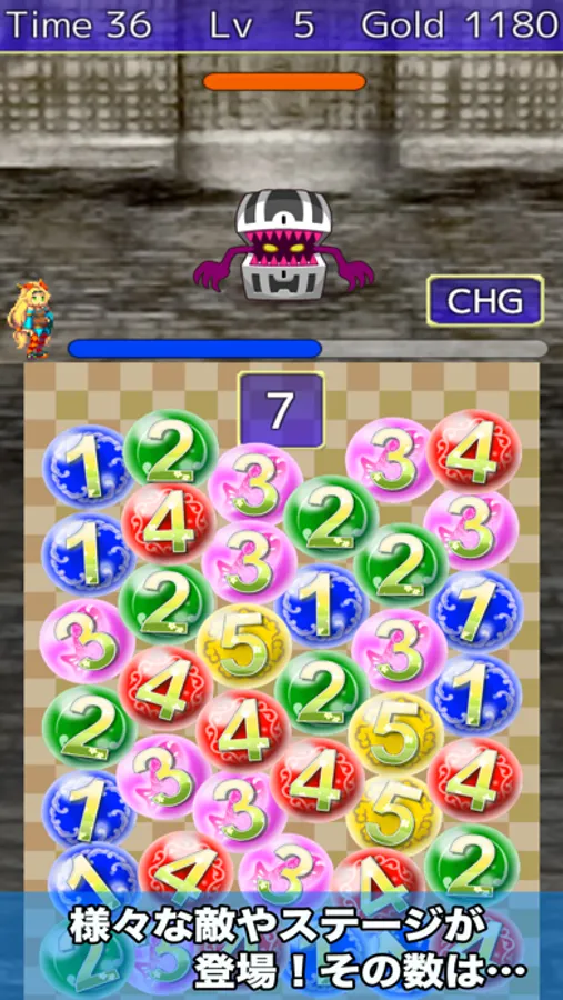画面に表示される数字になるようにボールを選択し、敵にダメージを与えて倒していこう!