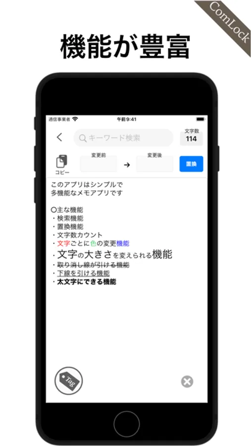 数あるメモ帳の中からキーワードによる検索をすることができます。