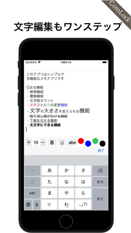 メモ内の文字を文字ごとに大きさの変更ができます。
