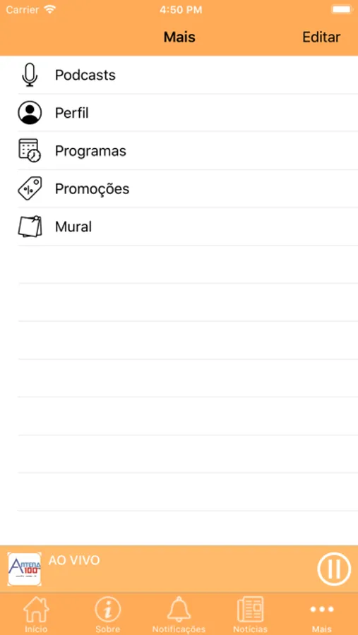 - Ouvir podcasts produzidos pela Rádio