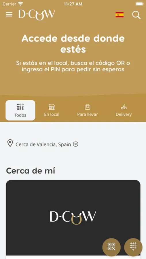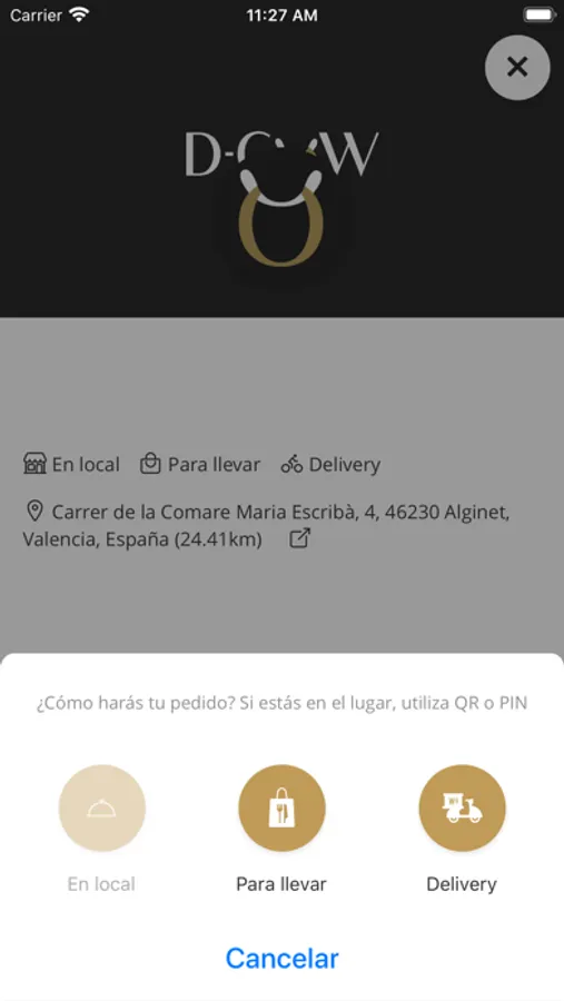 Selecciona la modalidad de compra. Delivery, para llevar o consumo en el local
