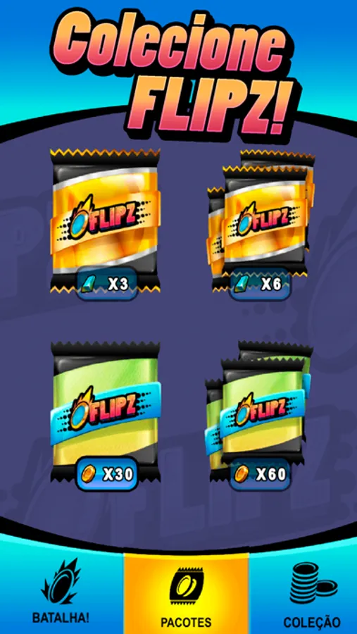 Batalhando você pode adquirir mais pacotes com diferentes raridades de Flipz, quanto mais você joga, mais você pode ter!