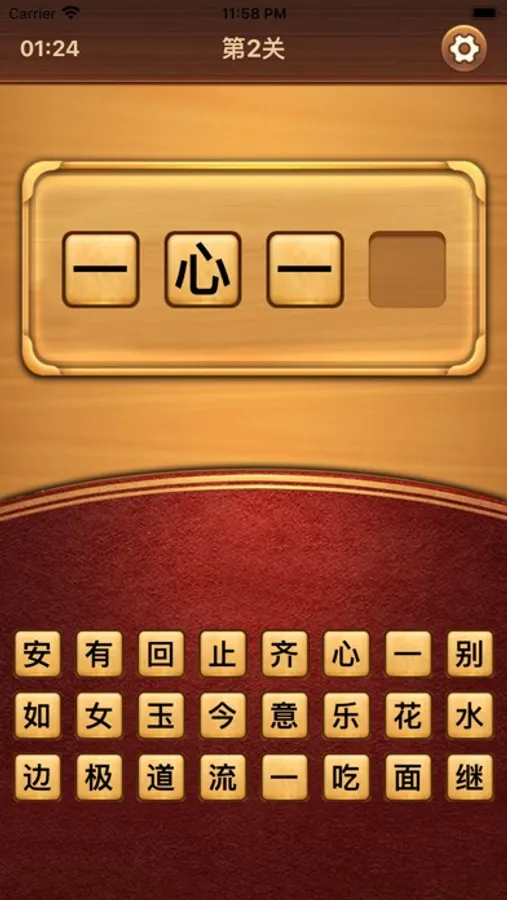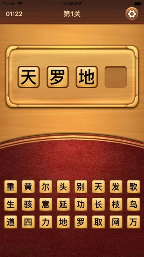 这是一款找成语的趣味文字小游戏,玩家从所给出文字中找出四个字组成一个成语即可过关,超过时间未找出则过关失败,考验你掌握的成语量~