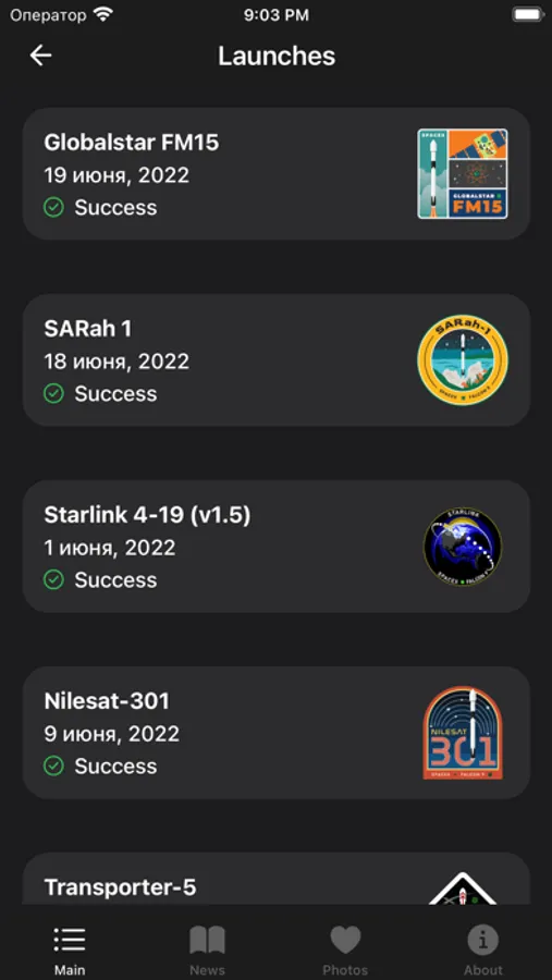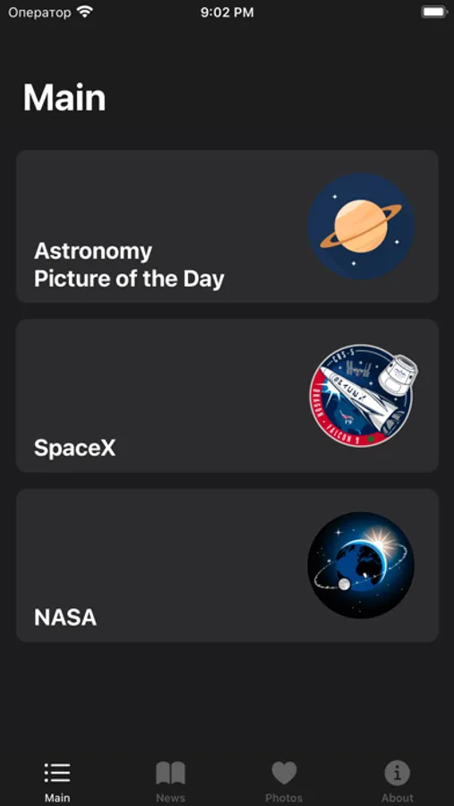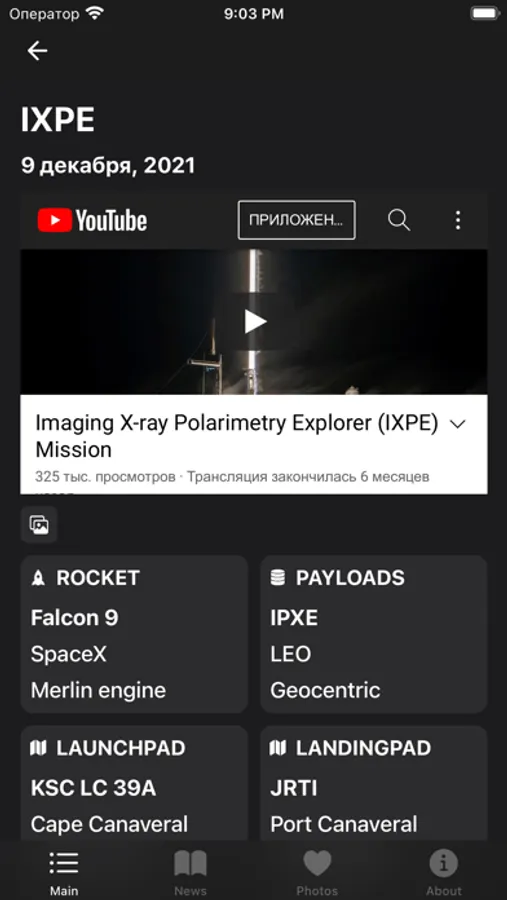 In the app you will find information about SpaceX rocket launches, NASA news and images.