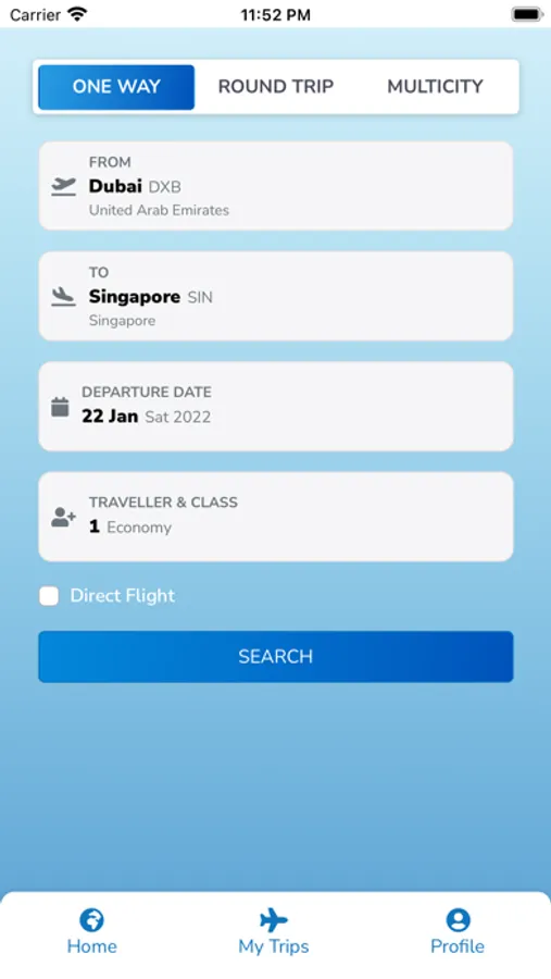 • Book One-way/Round Trips through a single window display. View flight fares and enjoy special discounts with the Flight Booking App.