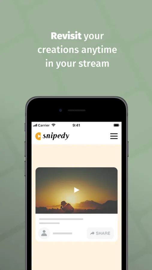 Did you come across a video while browsing and want to share a highlight from it? The Snipedy Extension lets you easily cut video highlights directly on YouTube or any website that embeds YouTube videos and share them with friends. Share exactly what you want with whom you want – where and when you want. You can always find your created Snips in your stream on snipedy.com.