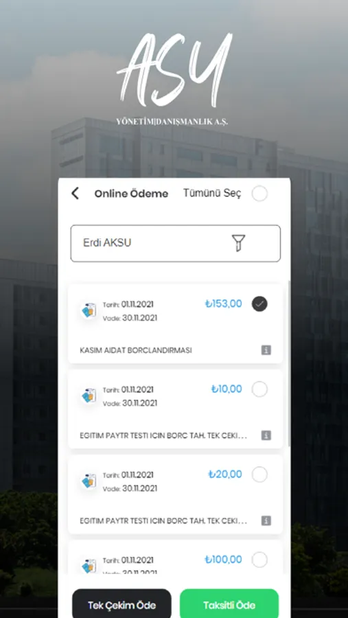 • Online Ödeme; Aidat, Isınma, Yatırım, Sıcak su vb. gibi gider kalemlerine ilişkin tutarları görüntüleme ve kendi Site Yönetimi Hesabınız ile ödemelerinizi kolayca gerçekleştirebilme,