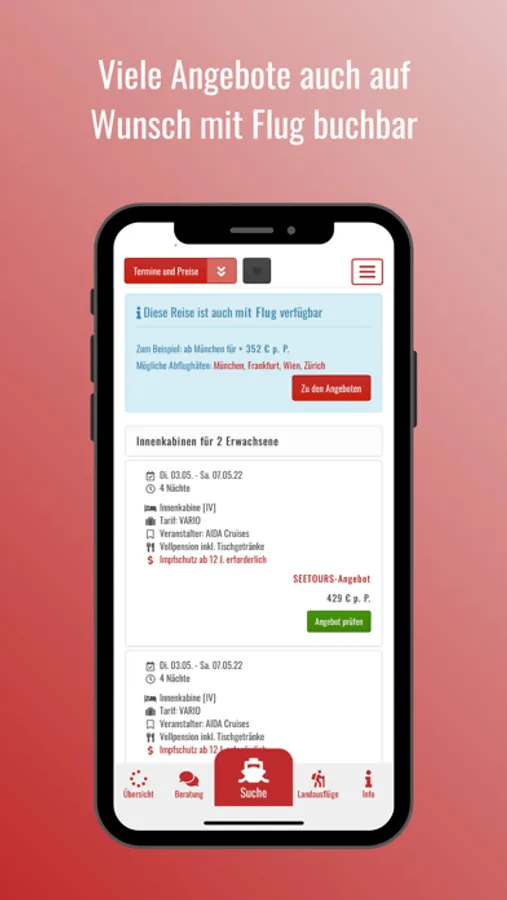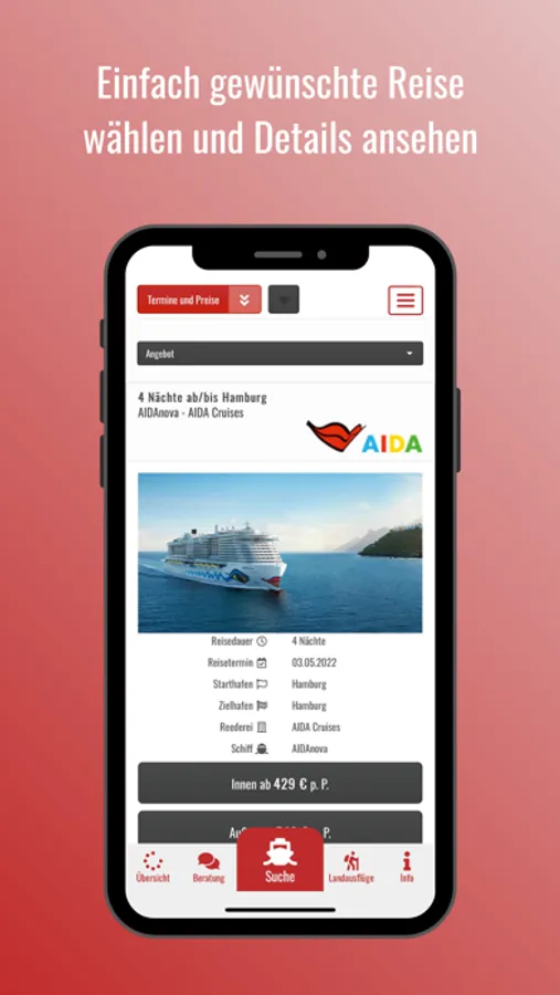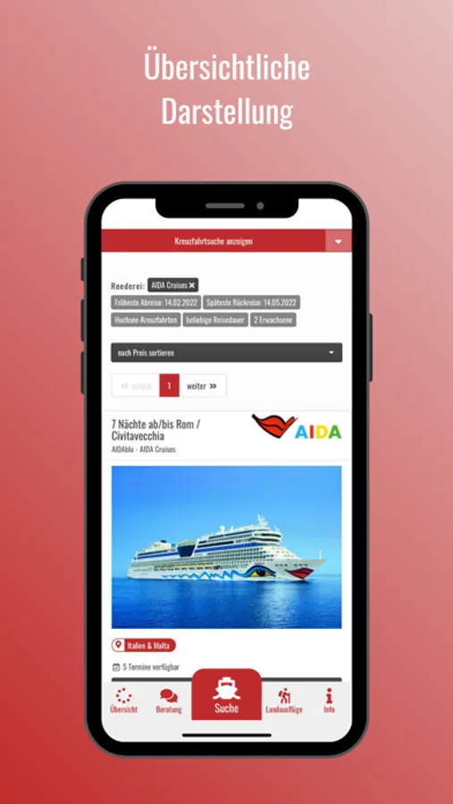 Der Kreuzfahrtlotse bringt die Möglichkeiten, Kreuzfahrten von zahlreichen namhaften Reedereien gleich per iPhone oder iPad zu suchen und zu buchen.