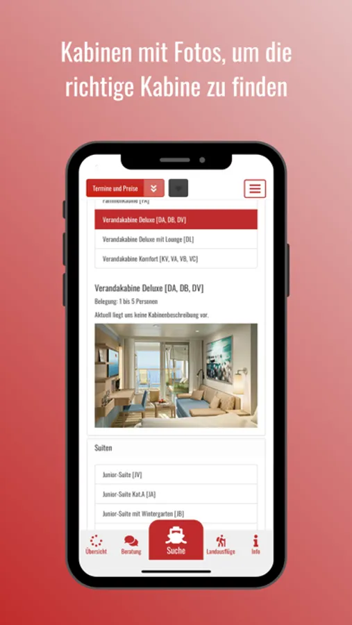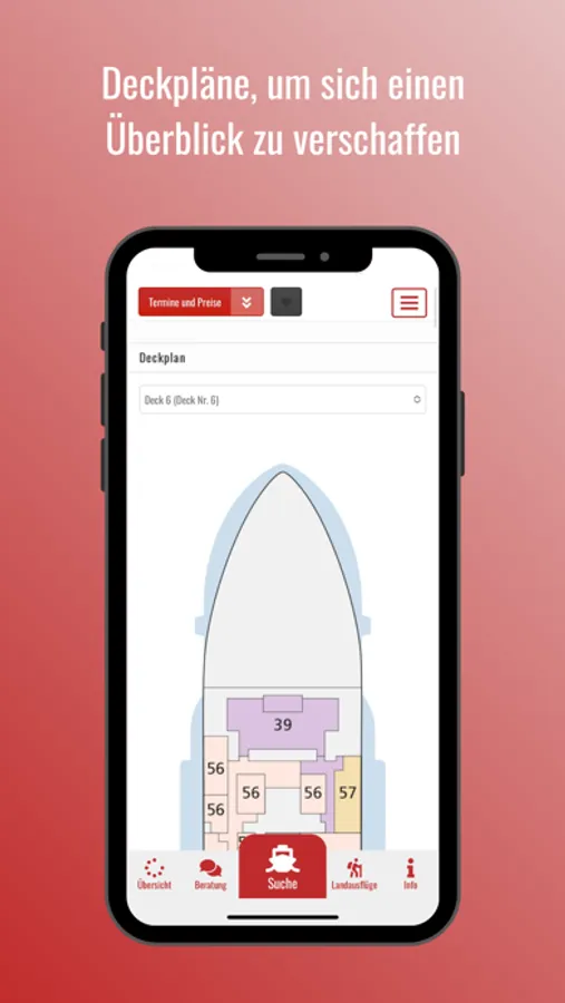 Alle wichtigen Details zu den angebotenen Kreuzfahrten: Deckpläne, Kabinen, Routen- und Schiffsdetails.