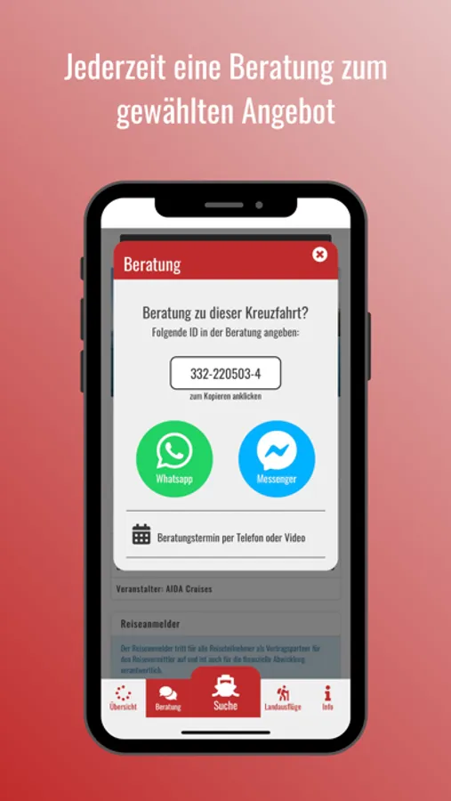 Kein Problem! Direkte Kontaktaufnahme per Whatsapp oder Buchung einer Live-Beratung per Telefon oder Video über den Kreuzfahrtlotsen.