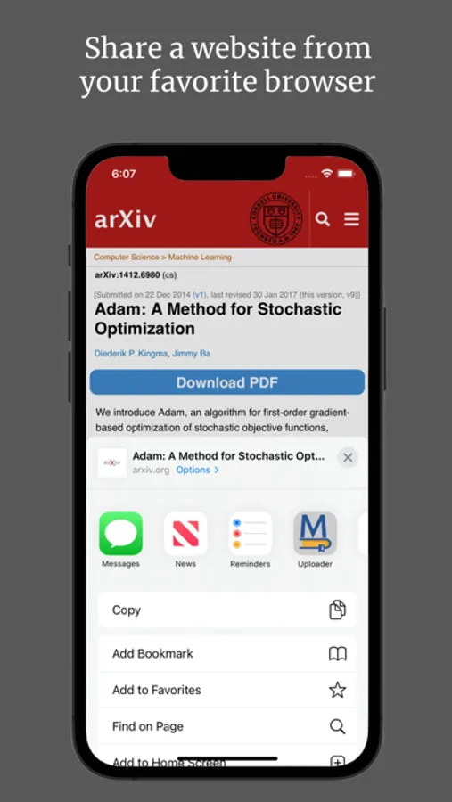 Directly paste a page URL into the Uploader-for-Mendeley search box or share a webpage or PDF with Uploader-for-Mendeley. We take care of the rest.