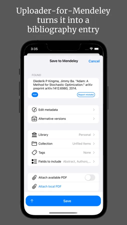 Uploader-for-Mendeley is the most complete and customizable uploader app for Mendeley: