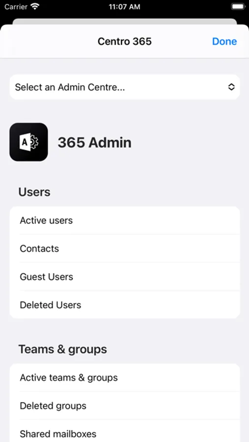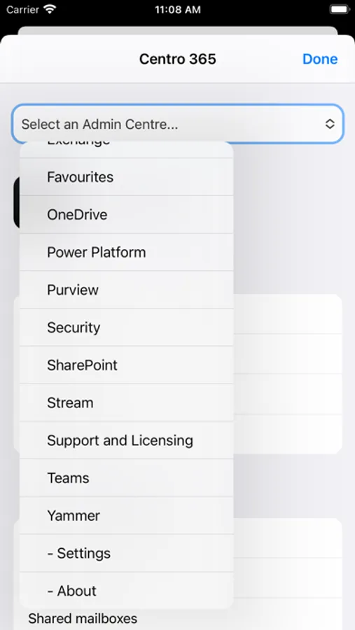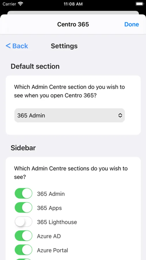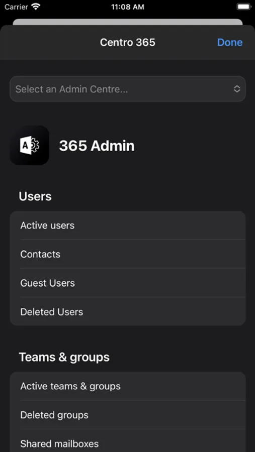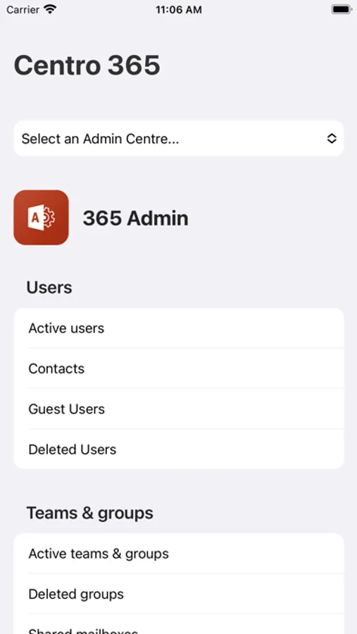 * Decide what appears when you open Centro 365. So whether you're mostly administrating Teams, Exchange Online or Azure Active Directory you can get right into it with a single click or tap.