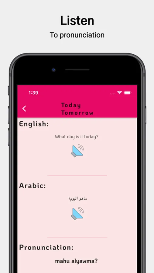 You can learn arabic phrases with english translation, listen arabic phrases and then speak arabic to practice.