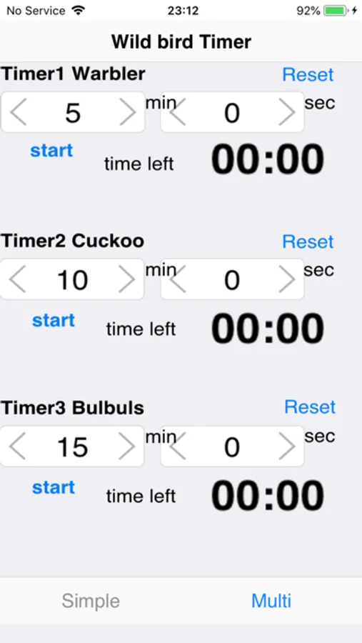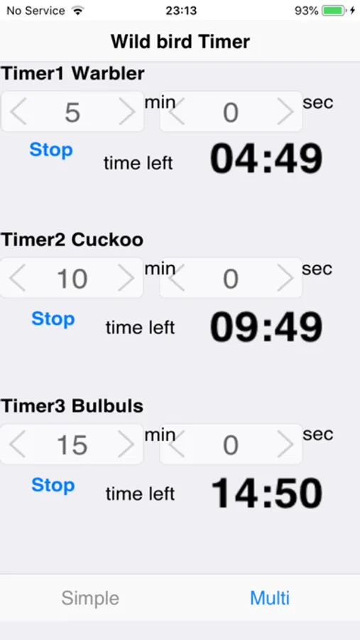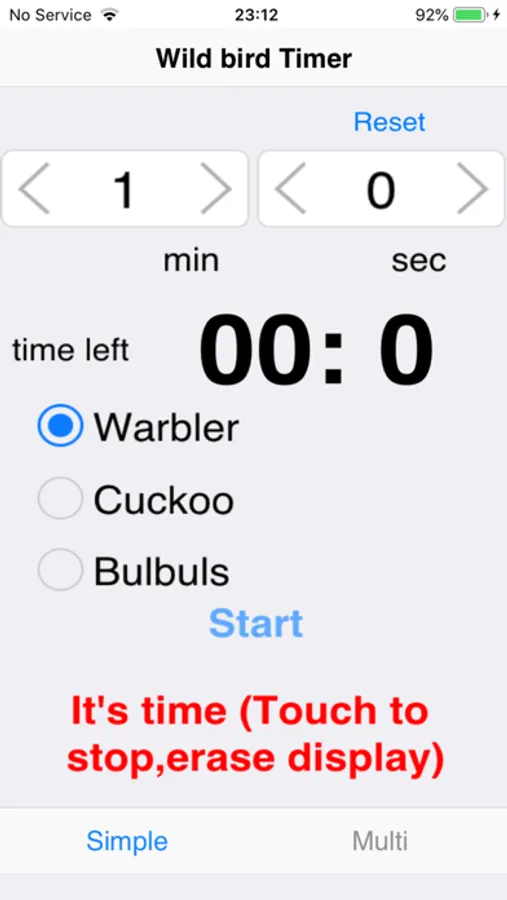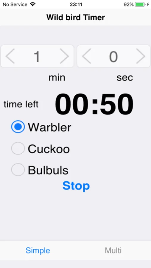 A timer that notifies you with wild bird sounds (warbler,cuckoo,bulbuls) when the set time comes.