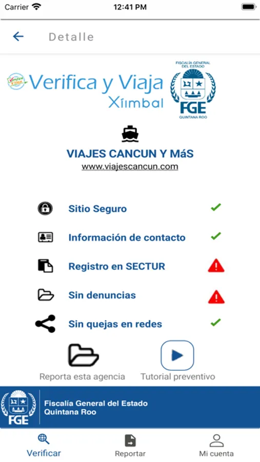 Identifica a las agencias de viaje que tienen todo en regla para tu confianza o reporta alguna anomalía o problema que hayas tenido con alguna de ellas mediante esta app.