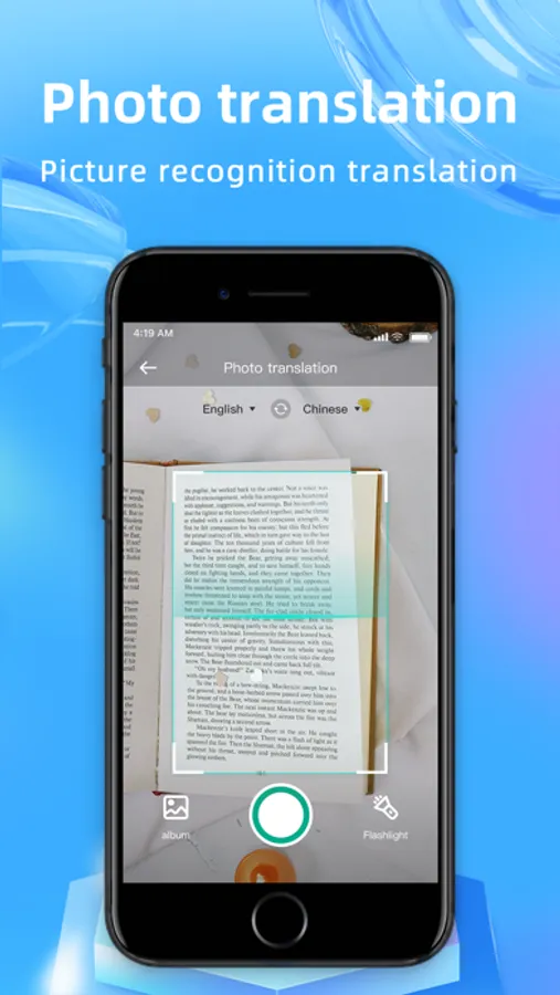 The mobile phone takes a photo of the translated text or selects the picture to recognize the text and translate it into the corresponding language