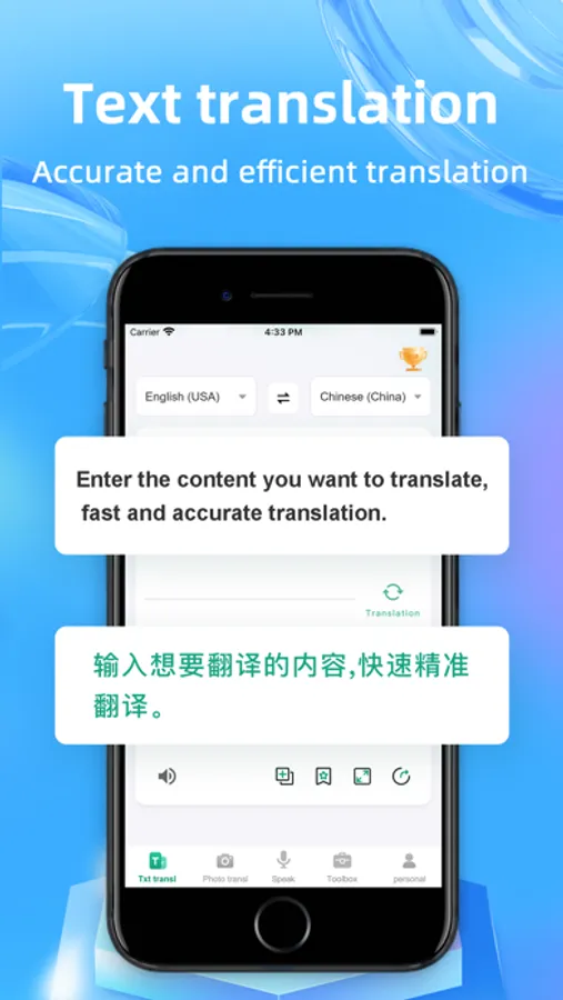 Integrated with advanced speech recognition technology and picture recognition technology, it can effectively improve your translation efficiency, and is a necessary translation tool for your work, life, study, travel, etc.