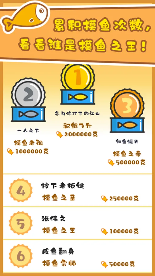 为小鱼增加了生长机制,摸鱼人摸鱼魂,终有一天靠摸鱼养鱼成为人上人!随着时间和摸鱼的加成,小鱼一路成长为鲲,谁能优先成为真正的摸鱼大师?