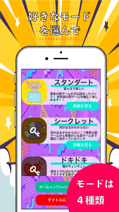 メモリー罰ゲーム、ドキドキ罰ゲーム、シークレット罰ゲームの中でも特にオススメの別ゲームを厳選して詰め合わせたモードです!