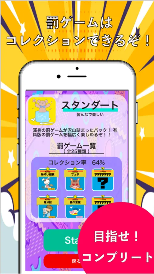 簡単なものからものすご〜い難しいものまで。いろいろなレベルの罰ゲームを厳選してたっぷり詰め込んだモードです!