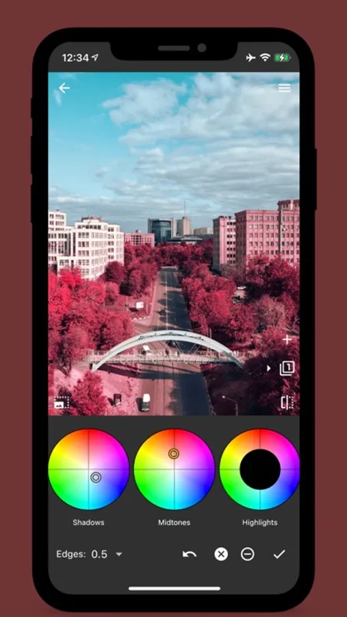 - Basic controls (brightness, contrast, shadows, highlights, saturation)