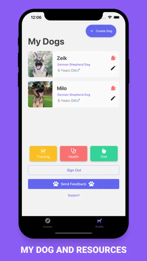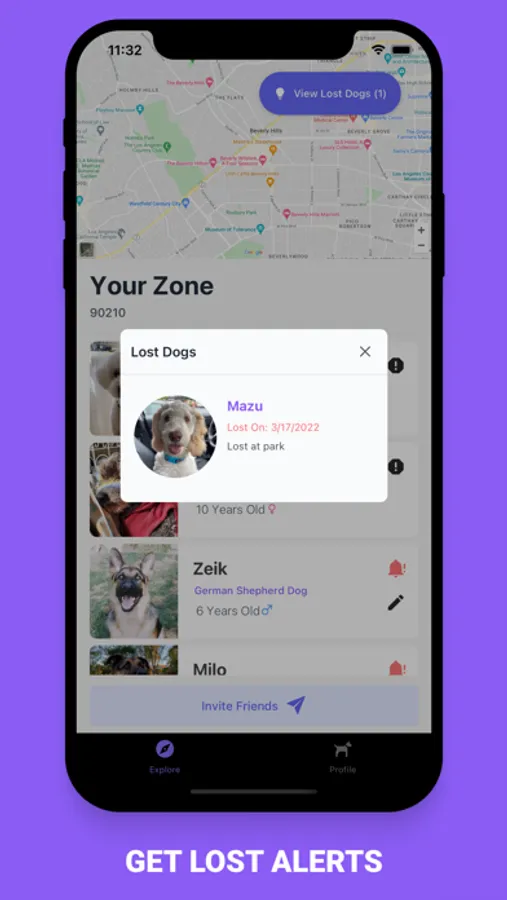 Dog Watch is a community for dog owners. Explore other dogs in your area. You can view some of their traits and see if your dogs would get along. You can also mark your dog as lost and alert other owners in your neighborhood. View quick links to some important resources for your pup.